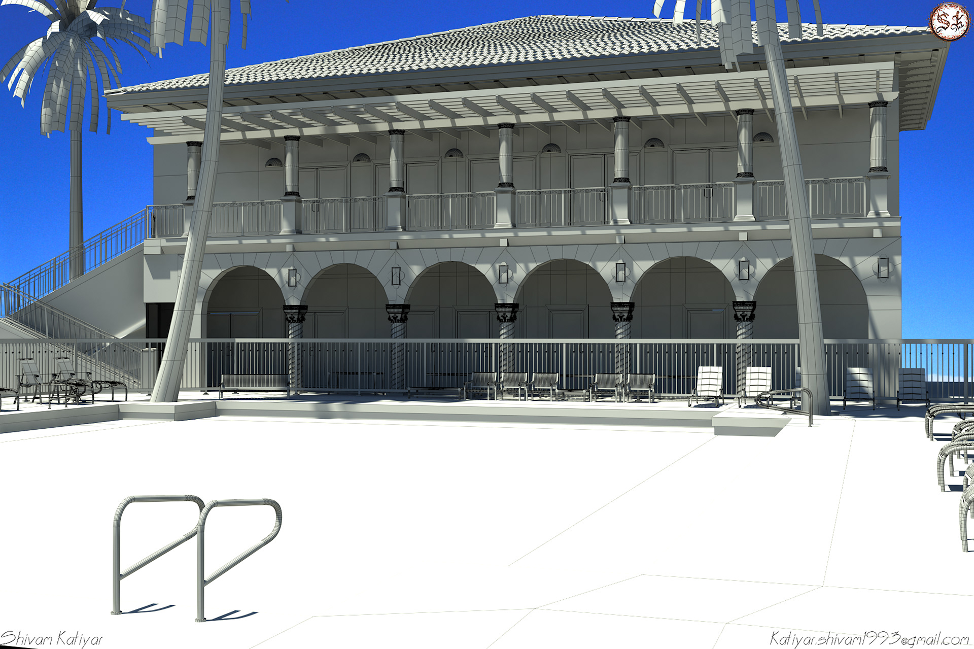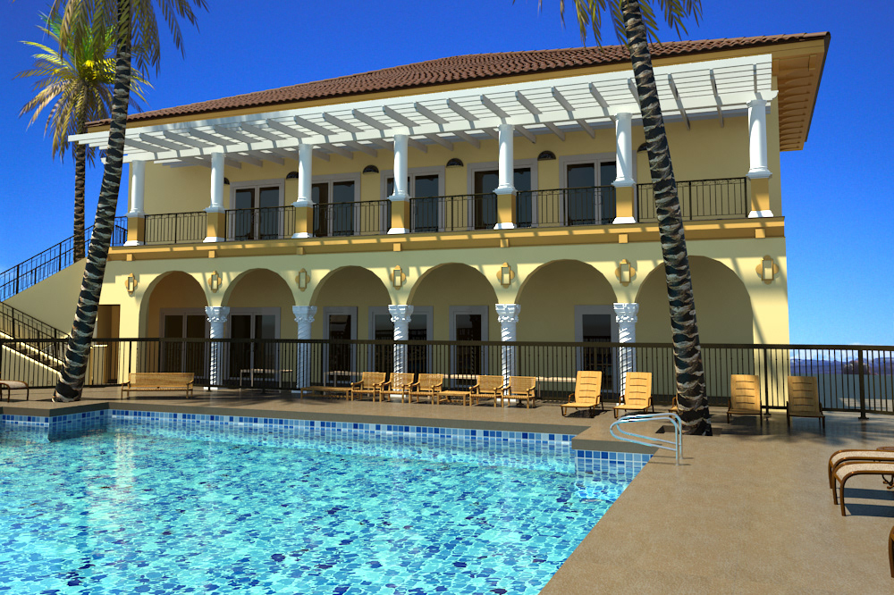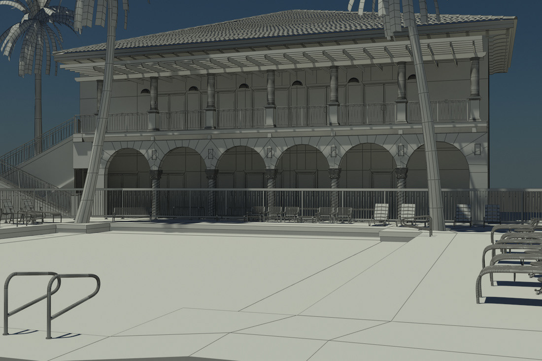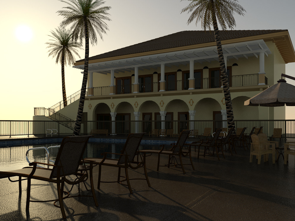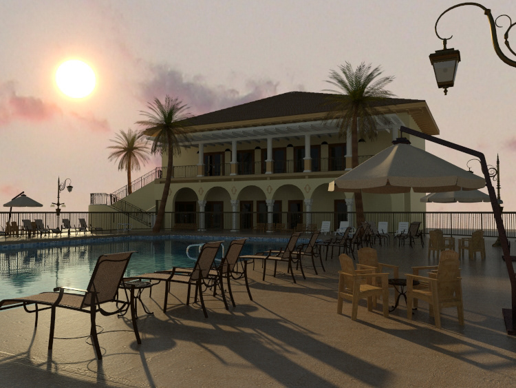 Exterior Set Swimming Pool Day-Time, Done on the initial days of my learning CGI industry. This is I tried to replicate the Boca Raton Hotel. Replicate in 3ds Max and Mental Ray